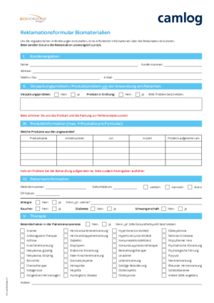 Reklamationsformular Biomaterialien