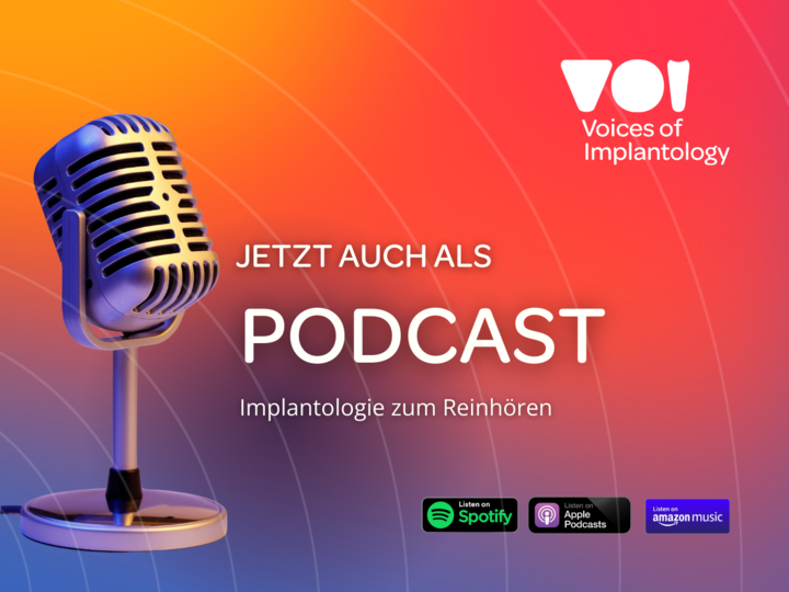 Ab sofort sind die Inhalte von Voices of Implantology auch als Podcast auf Spotify, Apple Podcasts und Amazon Music verfügbar.